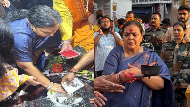 देवघर संताल एक्सप्रेस:-झारखंड सरकार की ग्रामीण विकास एवं पंचायती राज मंत्री दीपिका पांडेय सिंह ने सोमवार को देवघर स्थित पवित्र बाबा बैजनाथ धाम मंदिर में विधि-विधान के साथ पूजा-अर्चना कर भगवान भोलेनाथ का आशीर्वाद प्राप्त हुआ । इस दौरान उन्होंने पूरे श्रद्धा और भक्ति भाव से जलाभिषेक कर राज्य की खुशहाली और समृद्धि की कामना की। मंत्री दीपिका पांडेय सिंह ने बाबा भोलेनाथ के समक्ष झारखंड की उन्नति, जन-जन के कल्याण और प्रदेश में सुख-शांति की स्थापना हेतु विशेष प्रार्थना की।