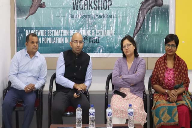 साहिबगंज- वन, पर्यावरण एवं जलवायु परिवर्तन विभाग साहिबगंज एवं भारतीय वन्यजीव संस्थान देहरादून के संयुक्त तत्वावधान में बुधवार को भारत में नदी और मुहाना डॉल्फ़िन की आबादी का व्यापक आंकलन – द्वितीय चक्र विषय पर एक दिवसीय क्षेत्रीय प्रशिक्षण कार्यशाला का आयोजन डॉल्फिन व्याख्या केंद्र चानन साहिबगंज में किया गया.कार्यशाला का शुभारंभ मुख्य अतिथि साहिबगंज वन प्रमंडल पदाधिकारी प्रबल गर्ग ने किया. इस अवसर पर डीपीओ, नमामि गंगे अमित मिश्रा की गरिमामय उपस्थिति रही. भारतीय वन्यजीव संस्थान से प्रोजेक्ट डॉल्फिन की वैज्ञानिक डॉ. सनी देउरी ने रेंजवाइड नदीय एवं मुहाना क्षेत्र डॉल्फिन आंकलन विषय पर विस्तृत परिचयात्मक प्रस्तुति दी.अपने उद्घाटन संबोधन में वन प्रमंडल पदाधिकारी प्रबल गर्ग ने डॉल्फिन संरक्षण की आवश्यकता तथा वैज्ञानिक एवं मानकीकृत आंकलन पद्धति के महत्व पर बल दिया. उन्होंने उपस्थित वन कर्मियों एवं साहिबगंज क्षेत्र के डॉल्फिन वाचरों से प्रशिक्षण के दौरान बताई गई विधियों को गंभीरता से सीखने एवं भविष्य में सर्वेक्षण कार्य में सक्रिय भूमिका निभाने का आह्वान किया.