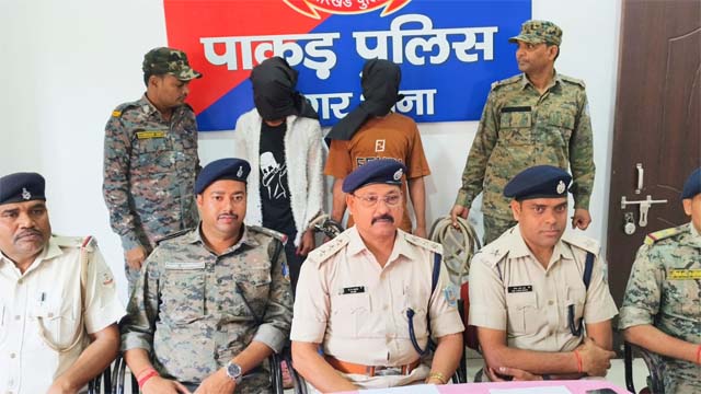 पाकुड़ । पाकुड़ नगर थाना क्षेत्र के सिद्धो-कान्हू पार्क के समीप अवैध गतिविधि की सूचना पर पुलिस ने त्वरित कार्रवाई करते हुए दो व्यक्तियों को गिरफ्तार किया है। गिरफ्तार आरोपियों के पास से एक काले रंग का देसी कट्टा बरामद किया गया है। एसडीपीओ डीएन आजाद ने प्रेस वार्ता कर बताया कि 22 मार्च 2026 दिन रविवार को पुलिस को गुप्त सूचना मिली थी कि कुछ लोग सिद्धो-कान्हू पार्क के पास आपस में झगड़ा कर रहे हैं और उनके पास हथियार भी मौजूद है। सूचना के सत्यापन के बाद नगर थाना पलिस और टाइगर मोबाइल टीम को तत्काल मौके पर भेजा गया। पुलिस बल को देखते ही दो व्यक्ति भागने लगे, जिन्हें पीछा कर पकड़ लिया गया। तलाशी के दौरान एक आरोपी के पास से अवैध देसी कट्टा बरामद किया गया। गिरफ्तार आरोपी में मुफस्सिल थाना अंतर्गत मनिरपुर निवासी साल्फी शेख और अंजना गांव निवासी सगीर शेख है। इस संबंध में पाकुड़ नगर थाना कांड संख्या 56/2026 के तहत आर्म्स एक्ट की धारा 25 (1-इ)/26/35 के अंतर्गत मामला दर्ज किया गया है। दोनों आरोपियों को न्यायिक हिरासत में भेज दिया गया है।छापामारी टीम में